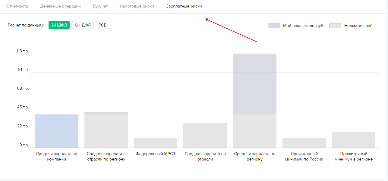 После загрузки нужных форм вы увидите результаты расчета каждого показателя в диаграмме на вкладке “Зарплатные риски”.
