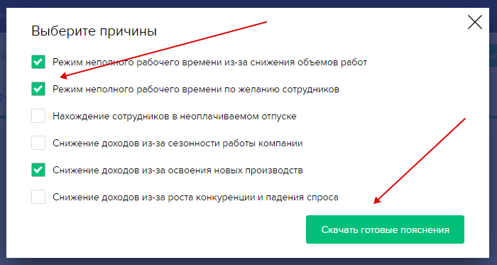 В открывшемся окне выберите причину низких показателей и нажмите кнопку “Скачать готовые пояснения”. Пояснения будут скачаны на ваш компьютер.