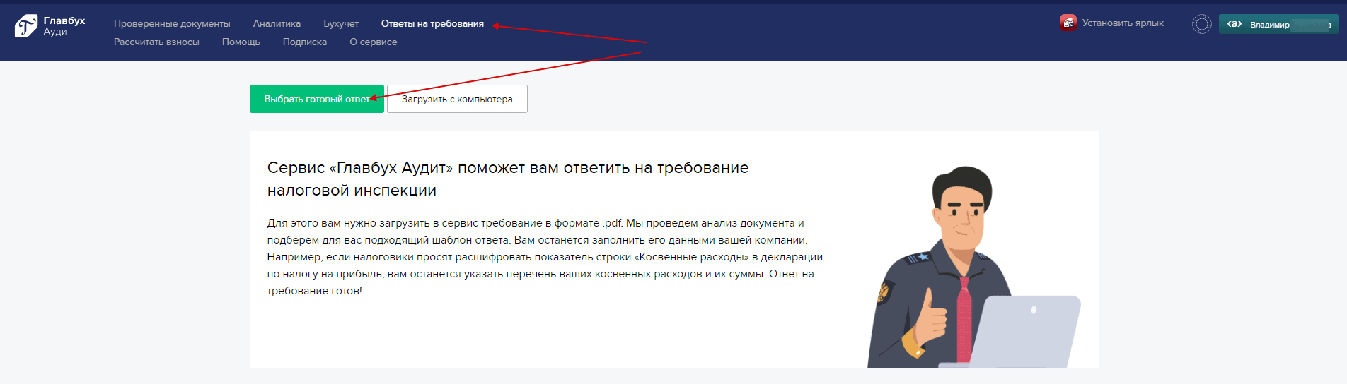 Есть два варианта. Первый — вы можете выбрать готовые шаблоны ответов, которые есть в сервисе. Второй — загрузить требование налоговиков в сервис, и он самостоятельно сформирует ответ.
