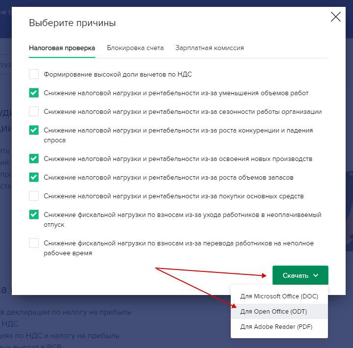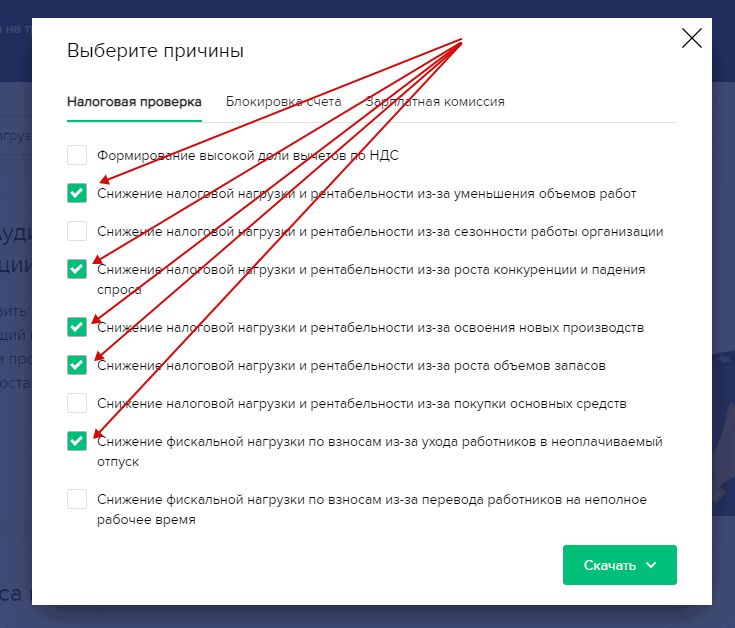 Вы можете выбрать сразу несколько причин. Сервис сформирует один ответ, в котором будет учтена каждая выбранная причина.
