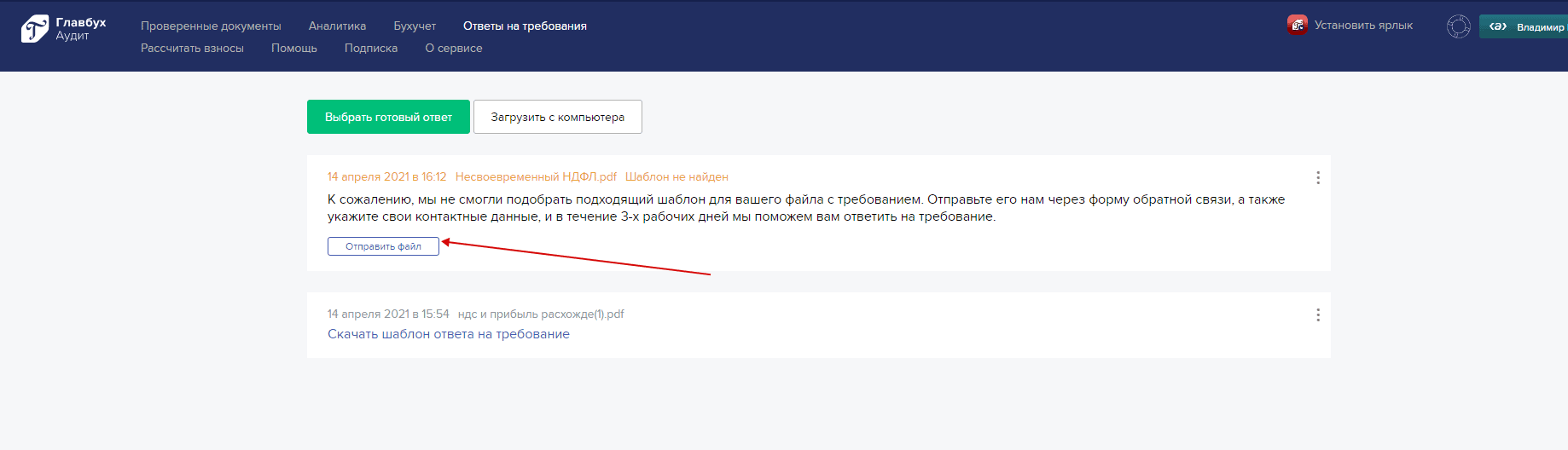 Если подходящего шаблона не нашлось, то вы увидите сообщение об этом. В такой ситуации вы можете отправить требование инспекции нам, а мы самостоятельно подготовим ответ на него.