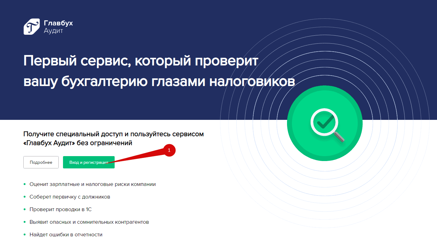 Для того, чтобы начать эксплуатацию программы перейдите по ссылке https://audit.glavbukh.ru/dashboard/. Откроется стартовая страница сервиса